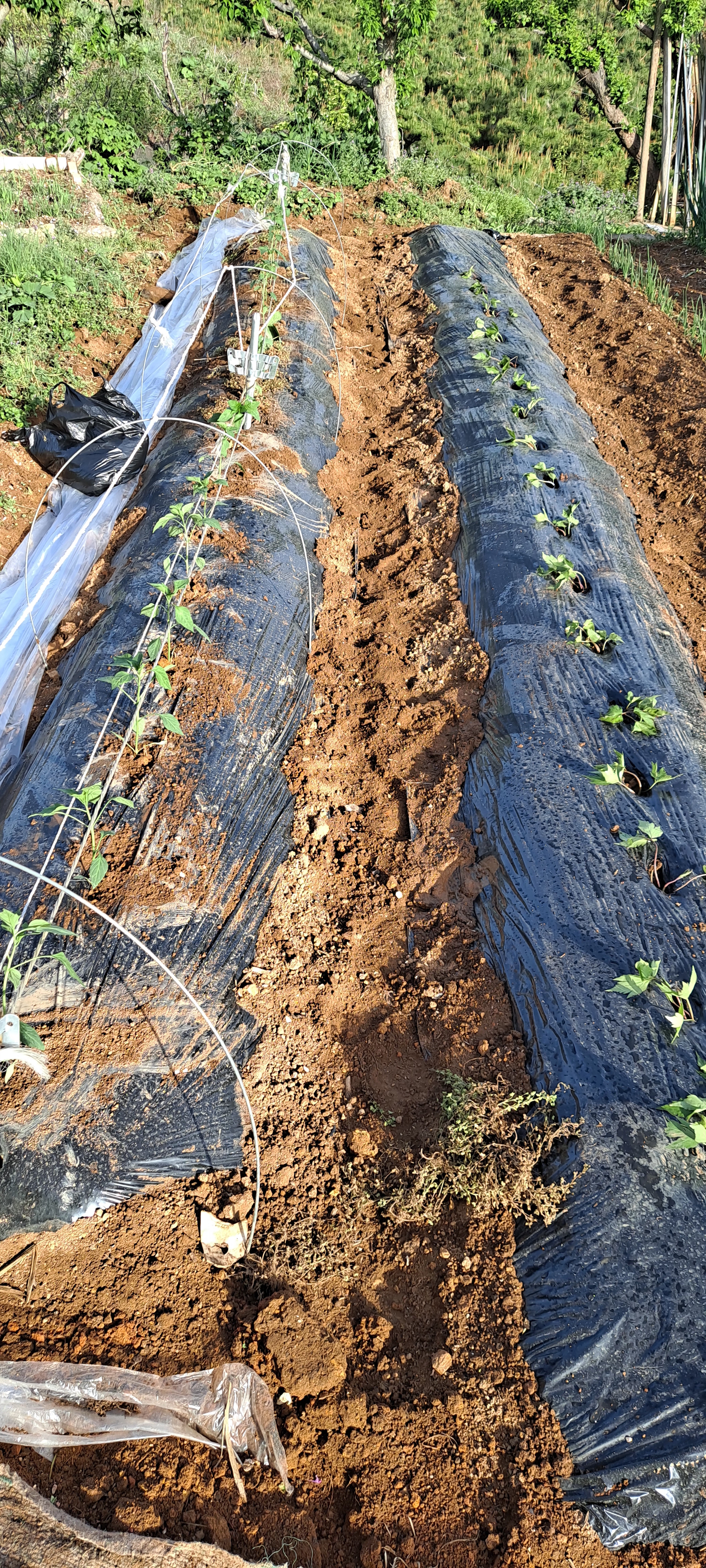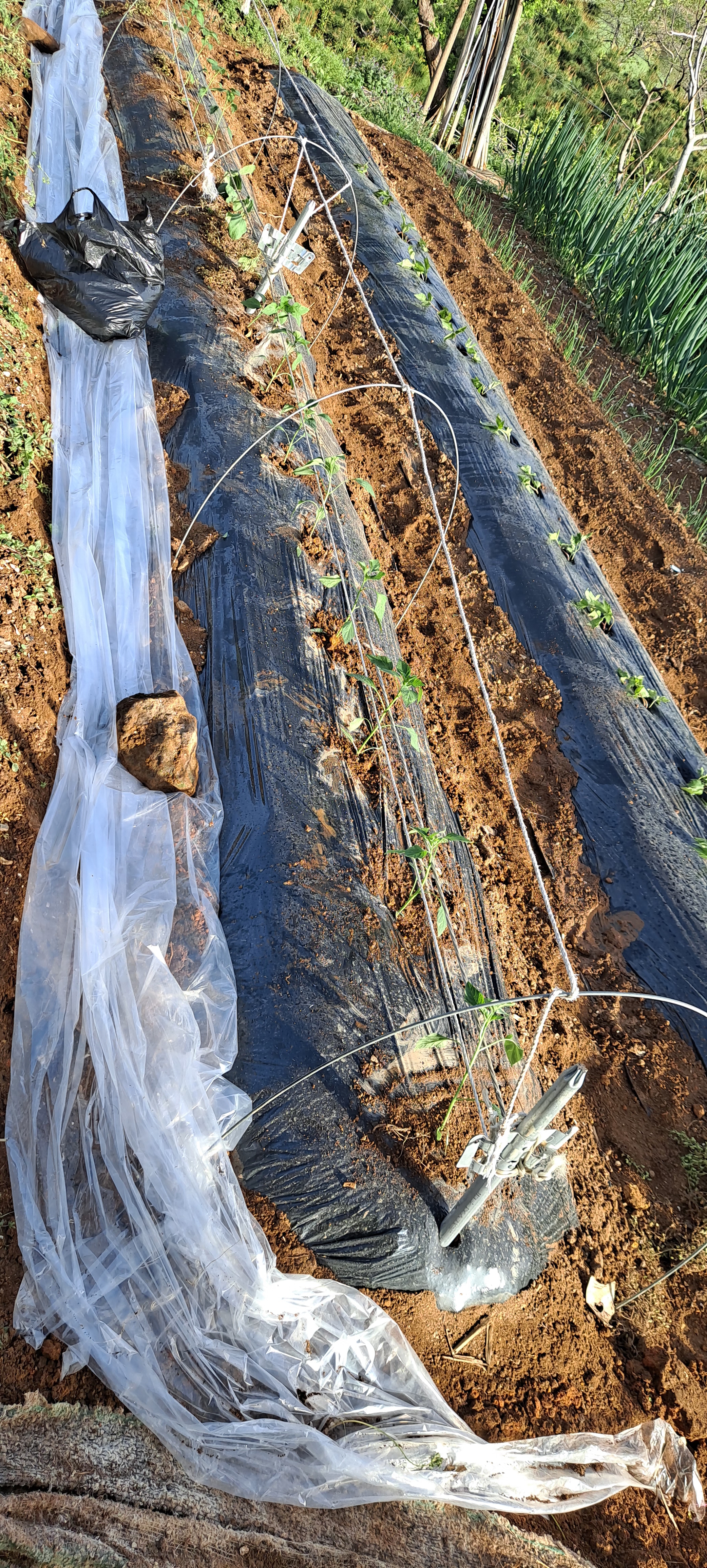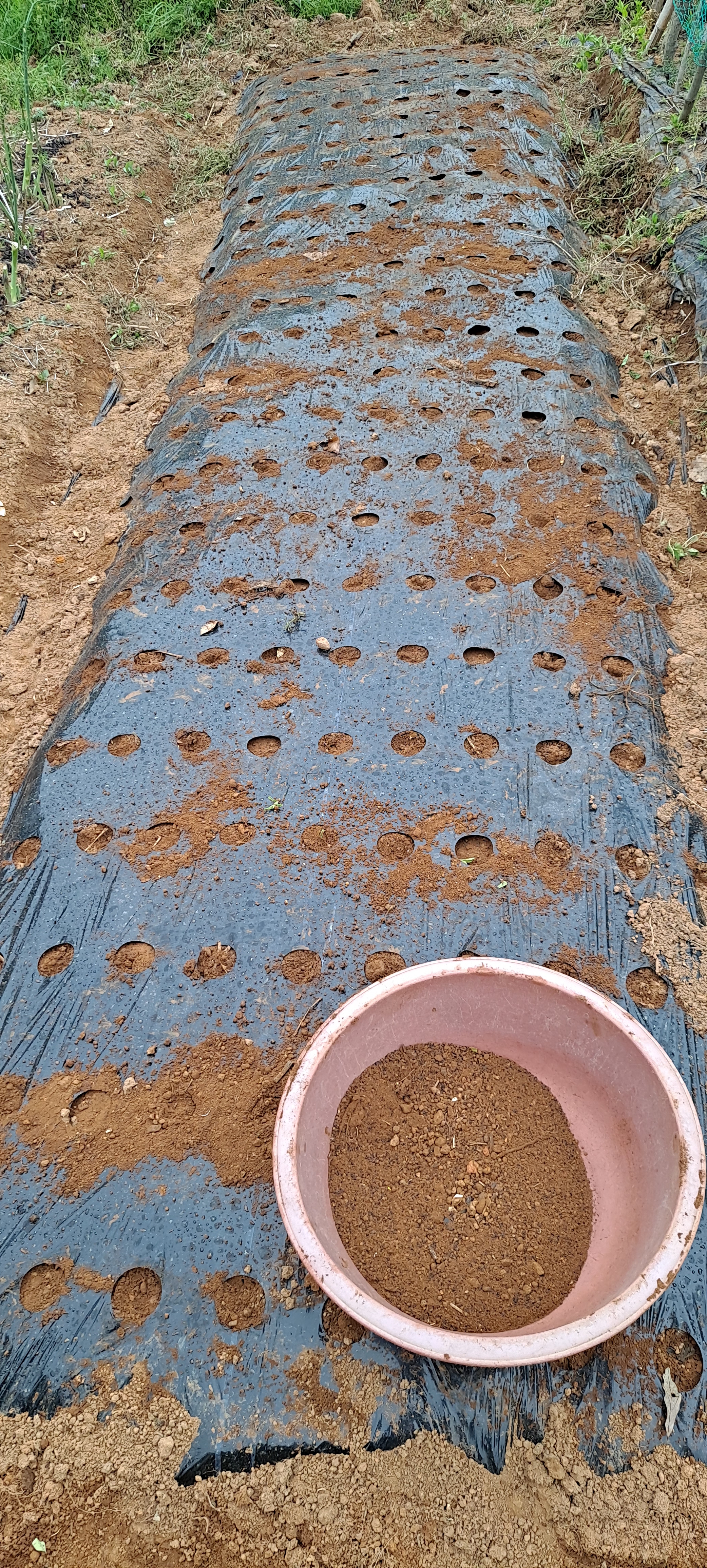 3) 씨앗 위에 모래나 흙을 10배 이상 깔고 마늘 천공 플라스틱을 설치한다.