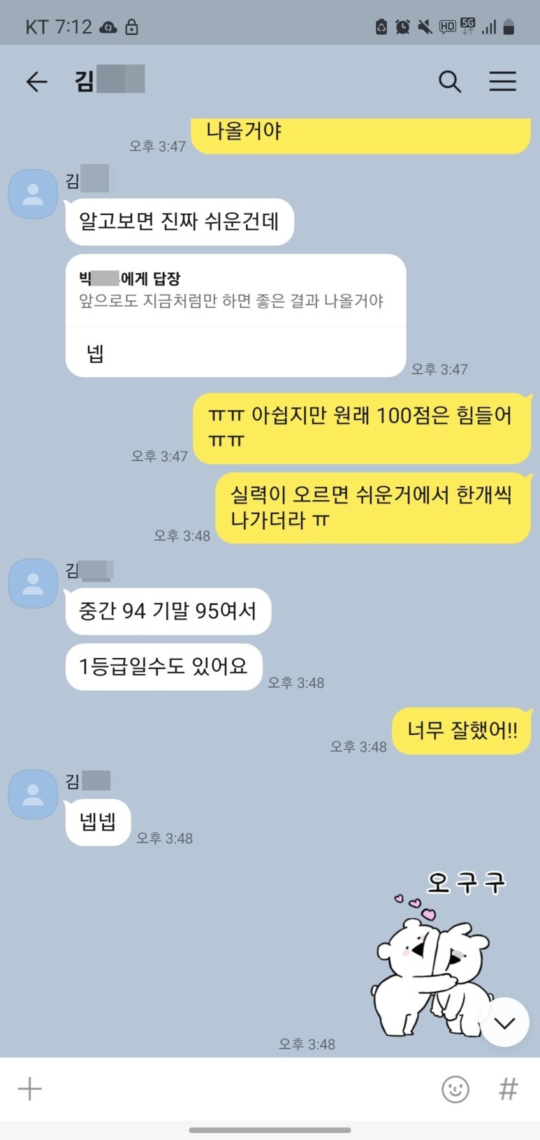 공부에 대한 자신감이 생겼기 때문에 공부에 대한 태도가 바뀌었습니다.