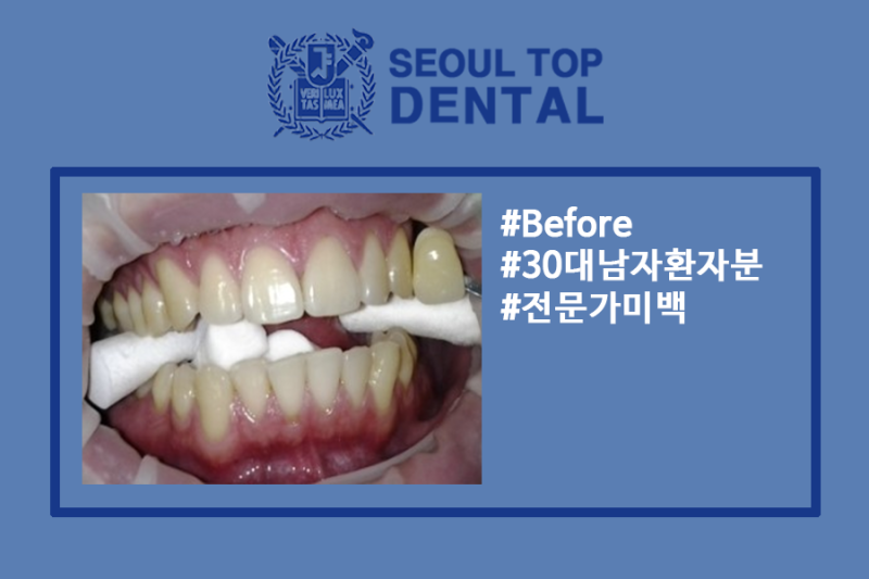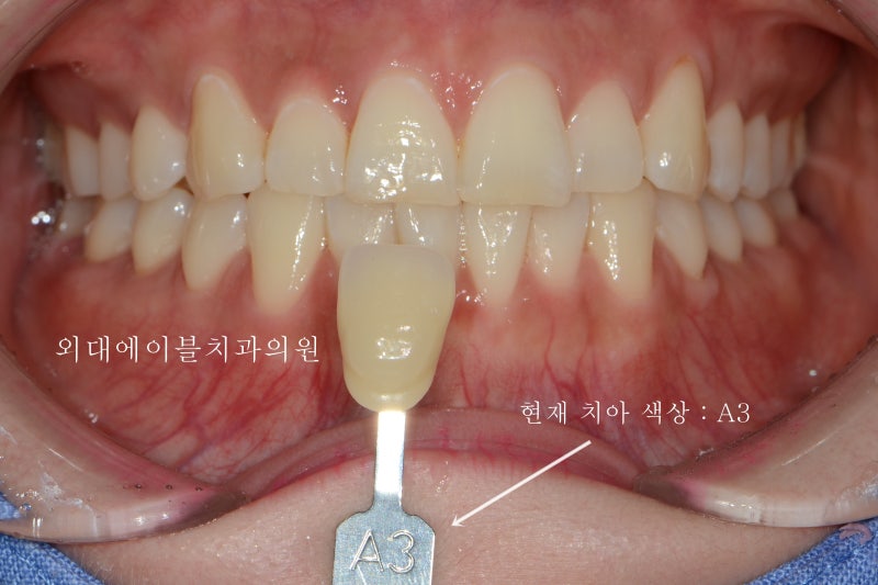 저희 고양시 원데이 치아미백 일산 탑치과 생활치아(신경이 살아있는 치아) 미백의 경우 처음 내원하신 환자분의 치아 사진을 촬영 후 전후 사진을 보여드리며, vita classical과 비교하면서 본인 치아색과 유사한 색상을 함께 촬영합니다.