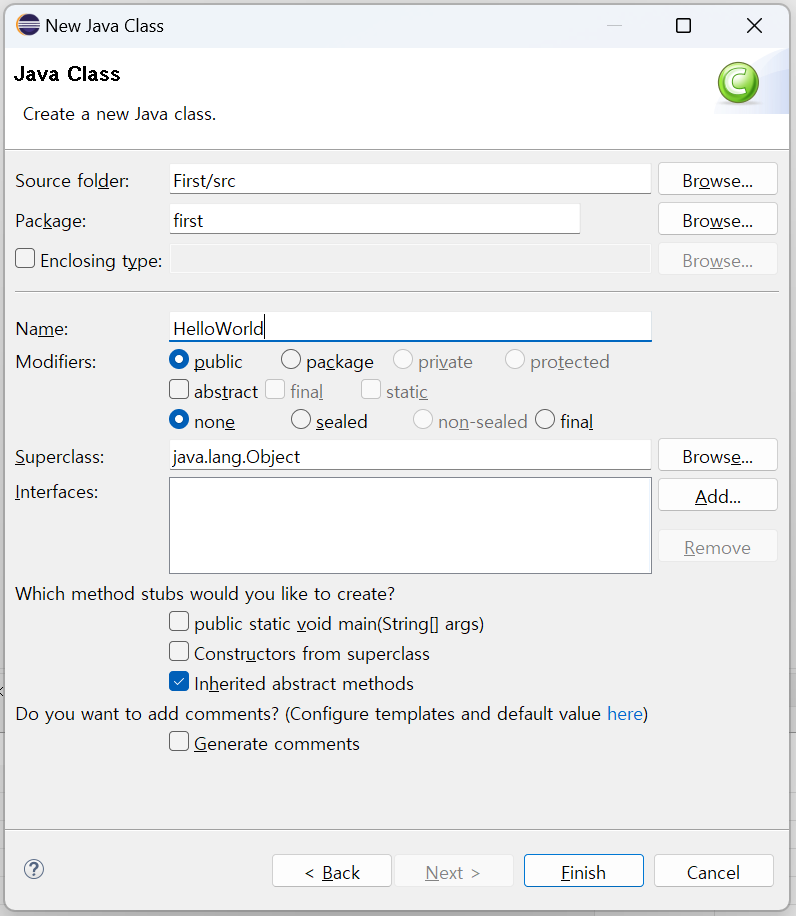 두 번째 저널에 쓴 것처럼 오류와 싸운 후 다시 새로운 Java 프로젝트를 만들었습니다.