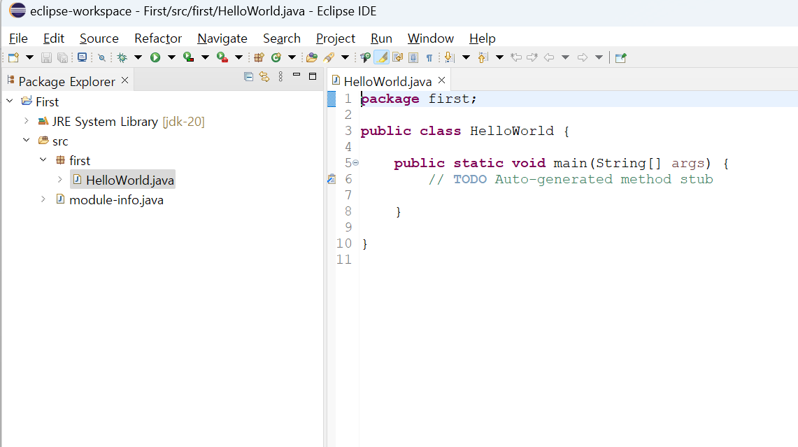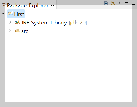 이것이 패키지 탐색기의 모습입니다. 조용히 jdk-20을 골랐어야 했다는 생각에 저를 바라보고 있는 것 같습니다.