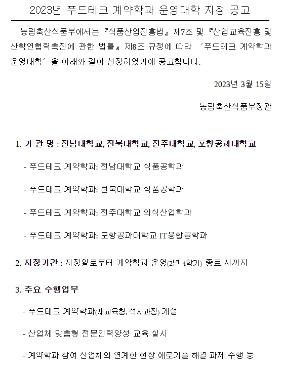 전남대학교 전북대학교 전주대학교 포항과학기술대학교 – 농림축산식품부, 농림축산식품부.