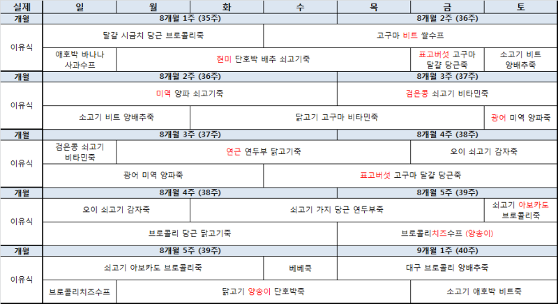 중기이유식1단계식단정리:죽이유식조합+간식