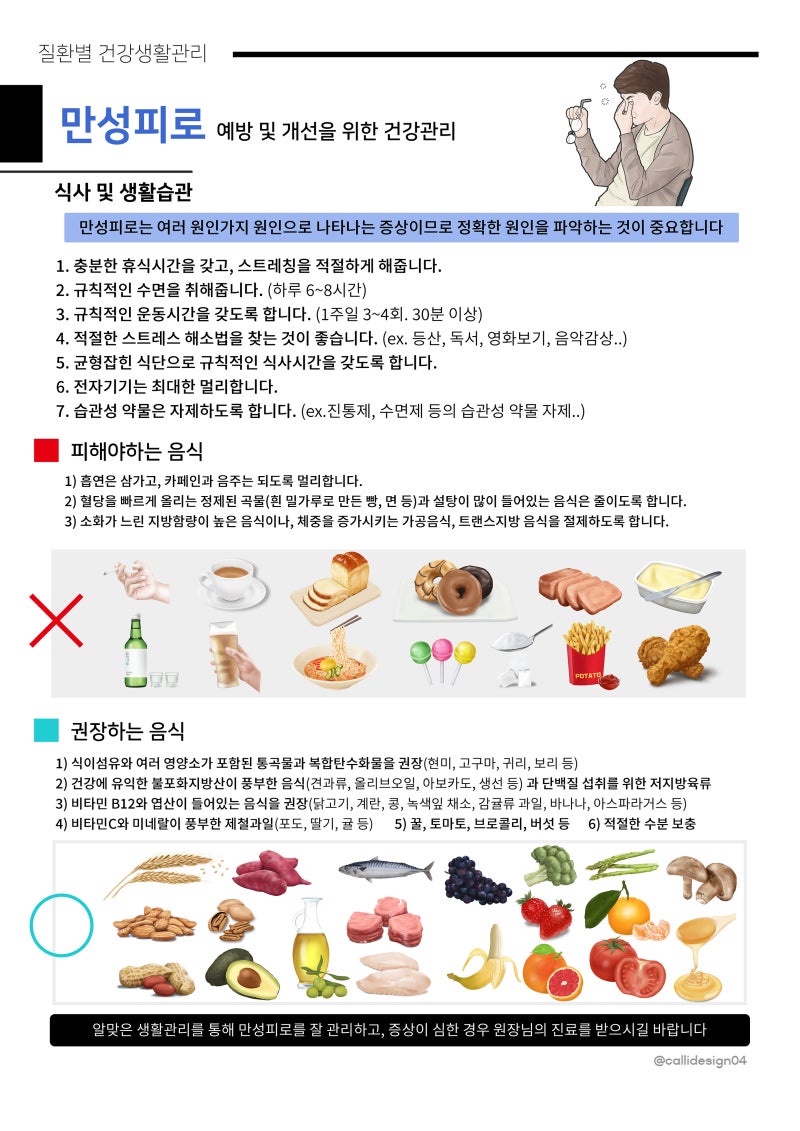 전신이 나른하고, 졸음이 오래 지속된다면 만성피로증후군을 의심해 볼 수 있는데 충분한 휴식을 취해도 피로가 풀리지 않아 보행 시 발생하는 피로나 부주의입니다. 이러한 증상이 한 달 이상 지속되거나 피로가 가시지 않는다면 만성 피로 증후군이 원인일 수 있습니다. 오늘은 만성피로증후군에 대해 알아보는 시간을 갖도록 하겠습니다.