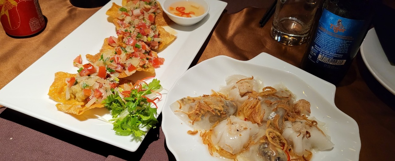 백장미, 완탕, 나팔꽃, 오징어 순대 같은 요리.