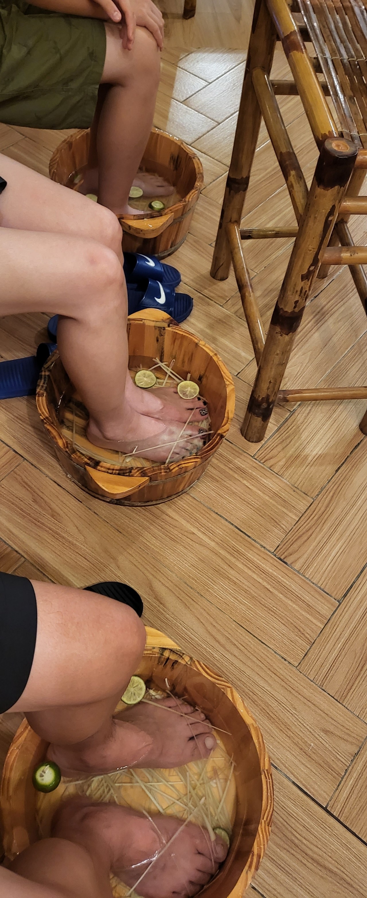 남편은 마사지를 별로 좋아하지 않는다고 하는데 첫날이라 같이 간다고 코를 심하게 골아요.
