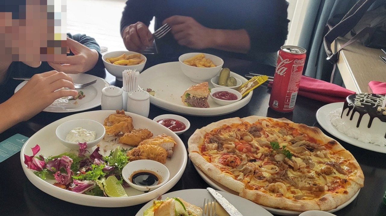 감자튀김은 눅눅해서 햄버거는 먹을 수 있었지만 피자는 그냥 그럭저럭.