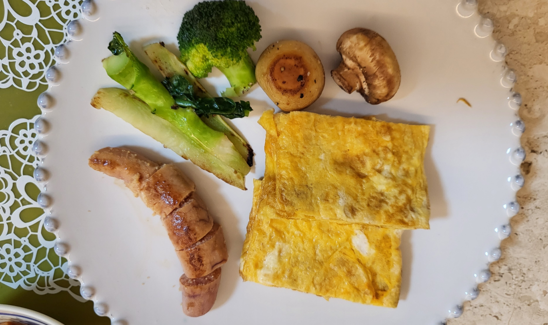 밑반찬 : 김치 2종, 스프링롤, 버섯, 브로콜리, 샐러리 그리고 뭐?