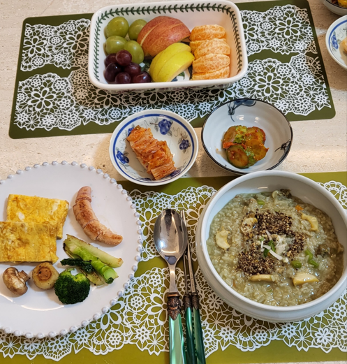 오늘 아침의 메인은 전복죽. 크리미하고 맛있고 꽉 차 있어요